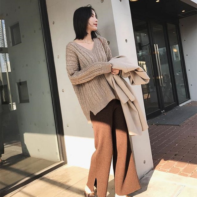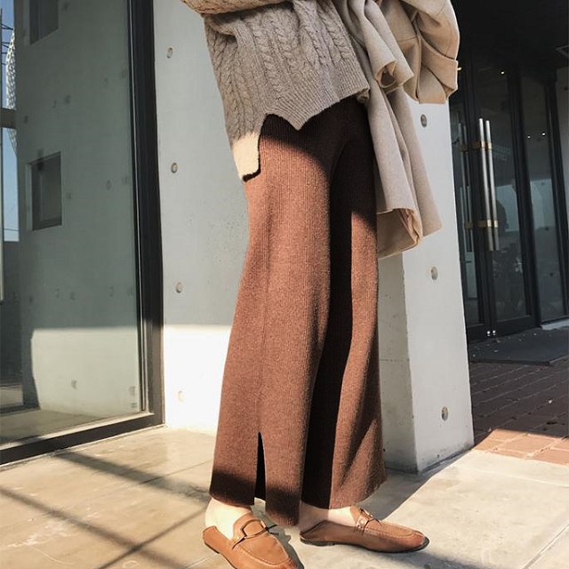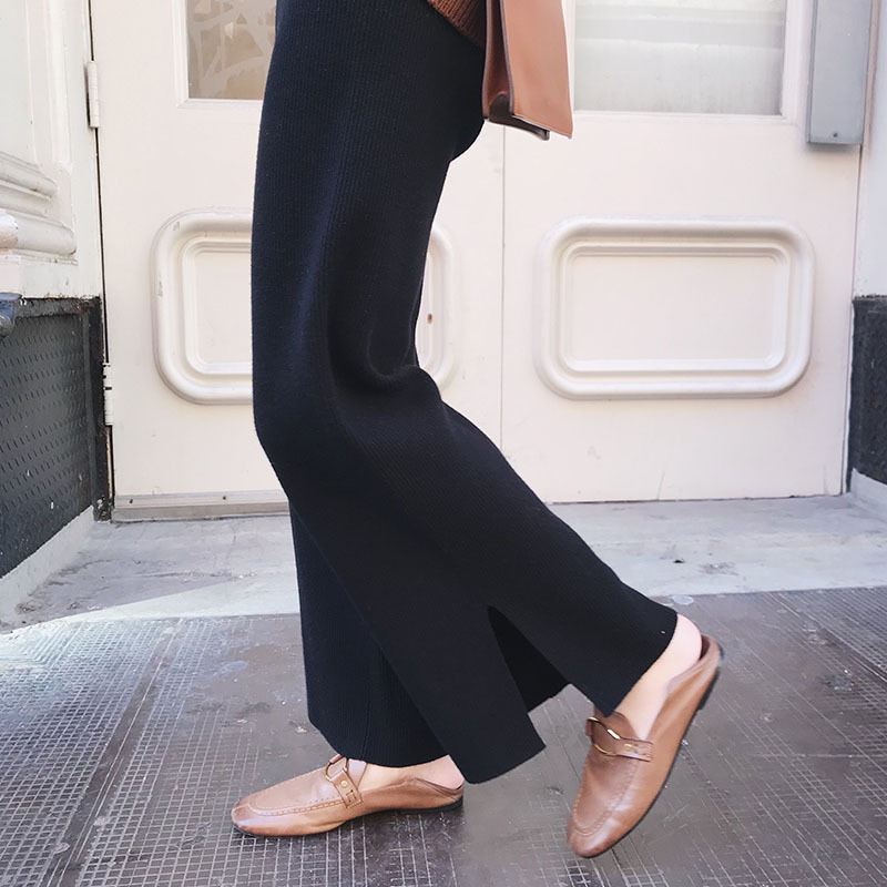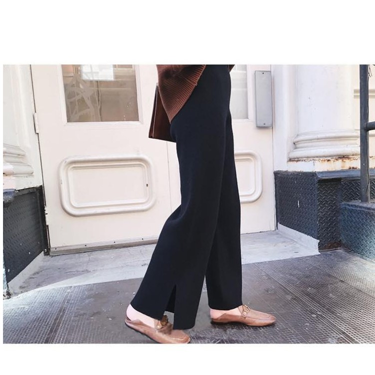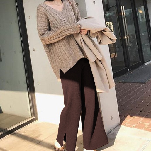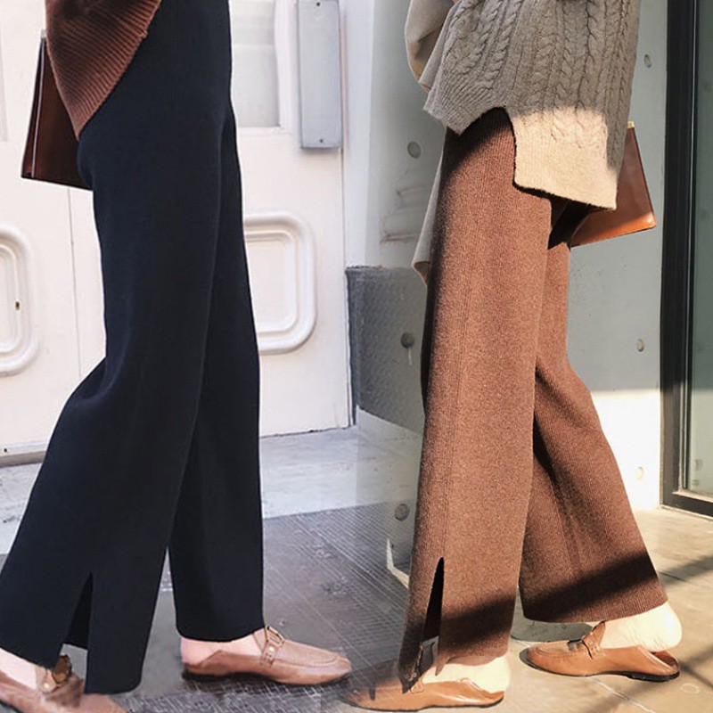 【梨卡】女裝 褲子 長褲 九分褲 直筒褲 寬褲 針織 保暖褲 闊腿褲 舒適褲子 百搭穿搭 BR1042【現貨24H】
