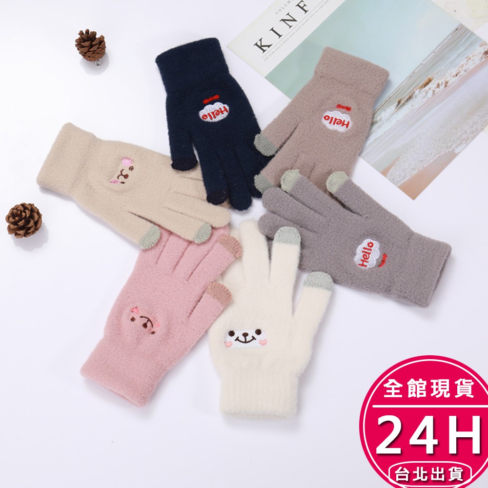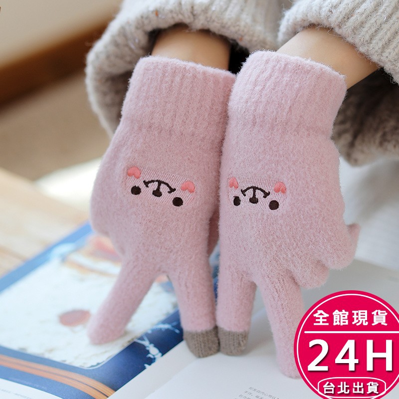 【梨卡】隔日到貨 【卡通圖案】手套 保暖手套 針織手套 毛手套 加厚手套 冬天手套 毛線手套 P012【現貨24H】
