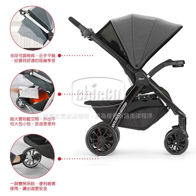 chicco-Bravo極致完美手推車特仕版(龐貝黑棕/典藏醇黑)