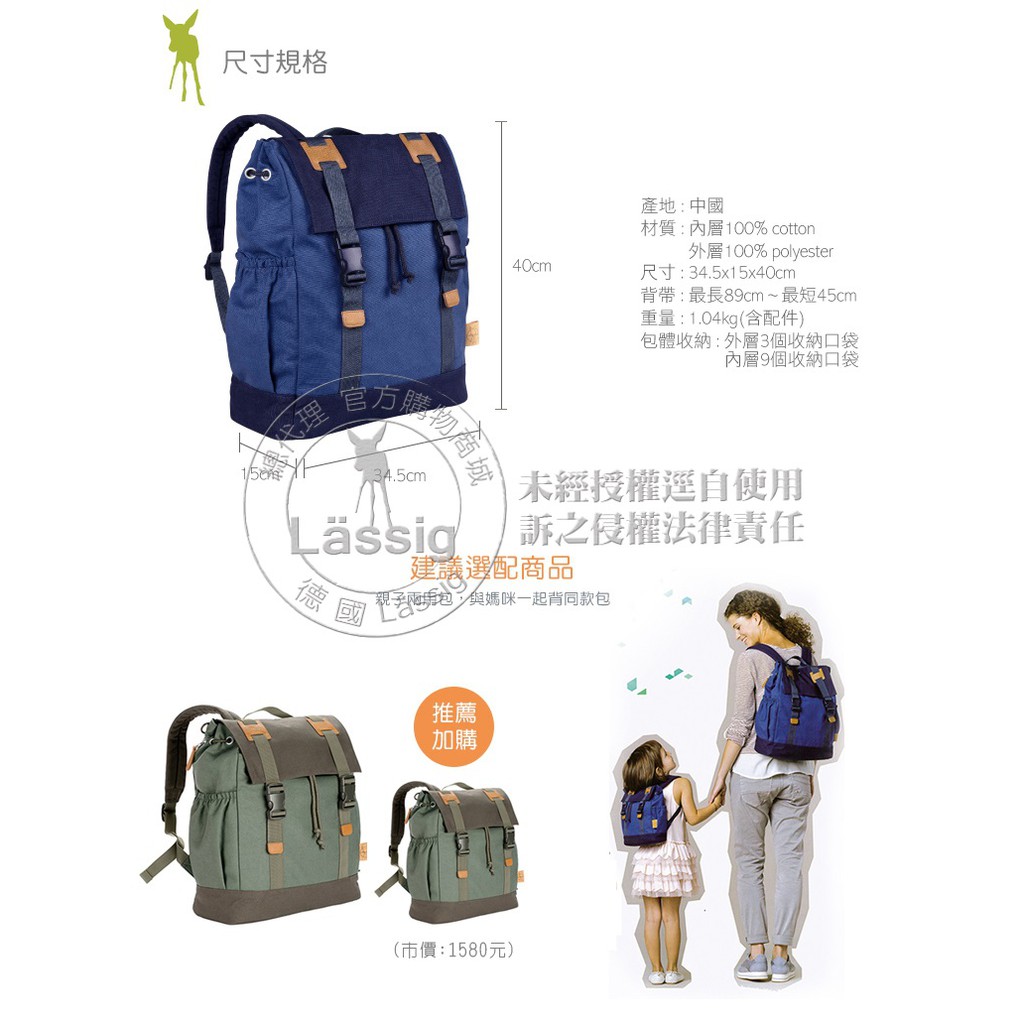 德國Lassig英倫率性旅行後背親子包-泛谷藍(小)