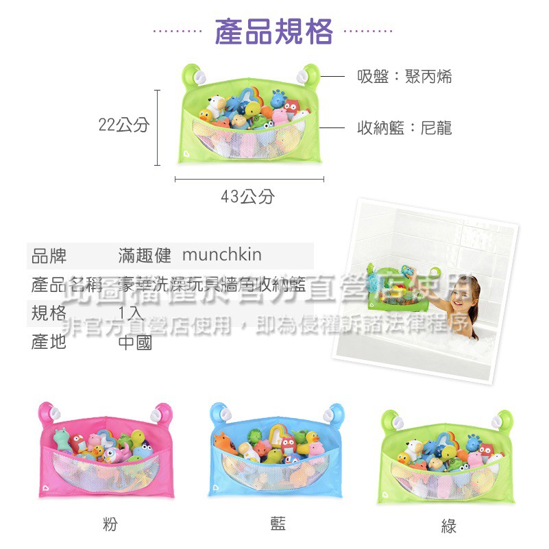 美國滿趣健muchkin-豪華洗澡玩具牆角收納籃-綠