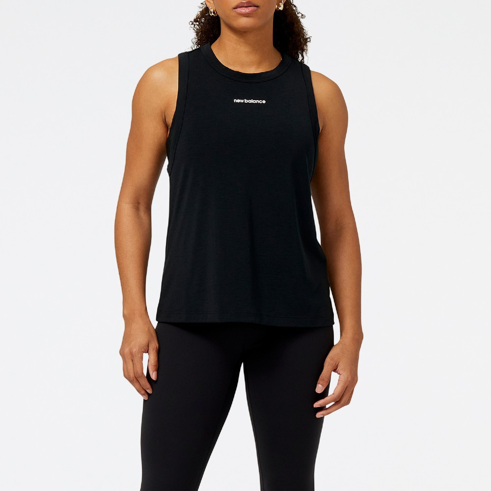 【New Balance】 NB 圓領前短後長運動背心_女性_黑色_WT31104BK