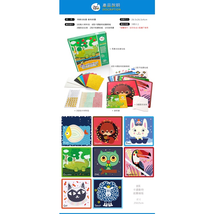 【JarMelo 原創美玩】馬賽克貼畫-動物家園 JA90961 兒童美術