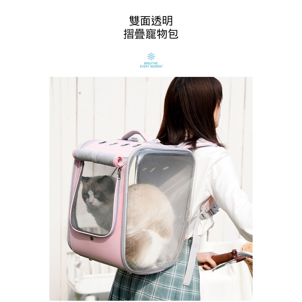 PETSEEK 雙面透明摺疊寵物包 外出貓包 貓背貓 寵物包 貓包 寵物外出包 透氣貓包 貓背包 貓用 背包 外出包
