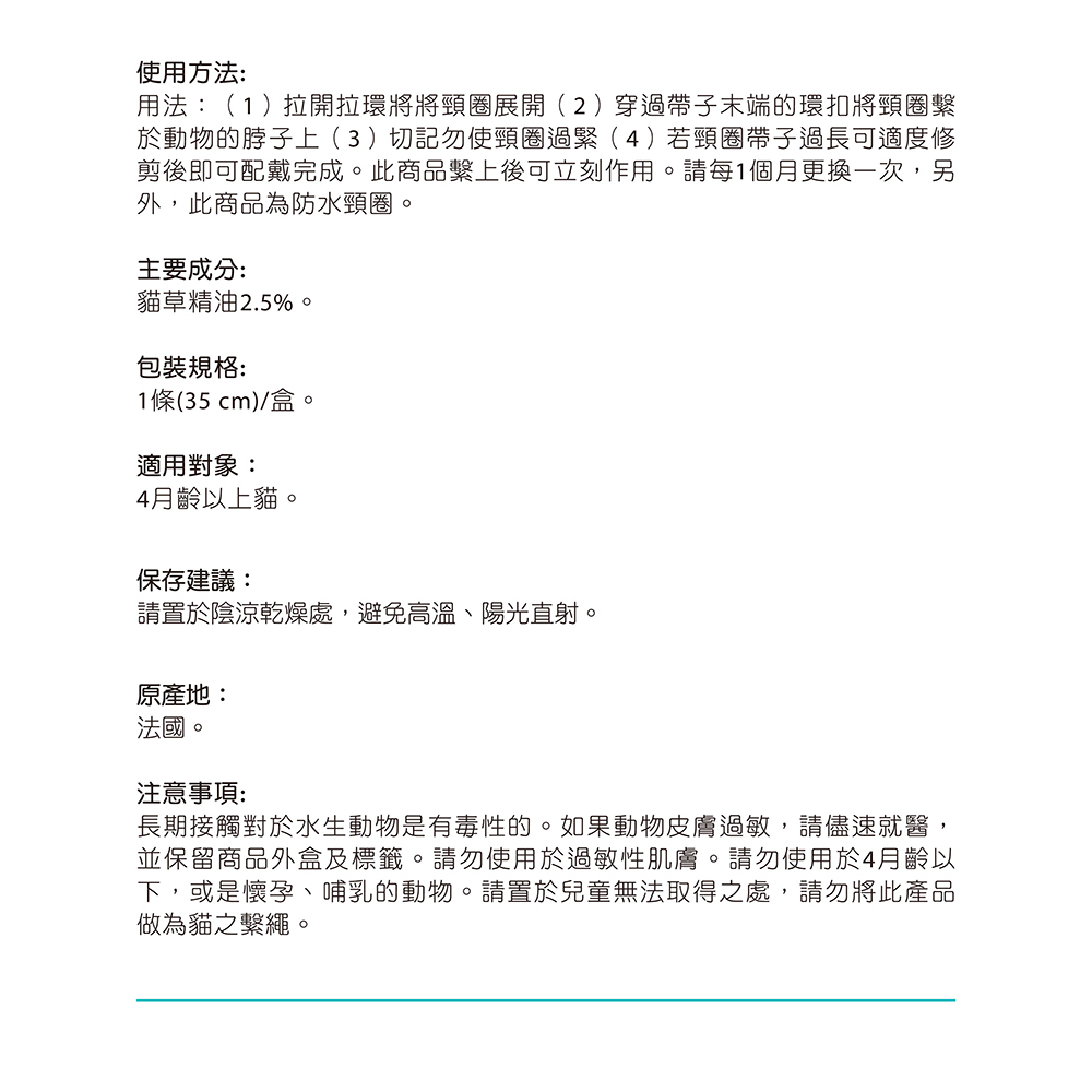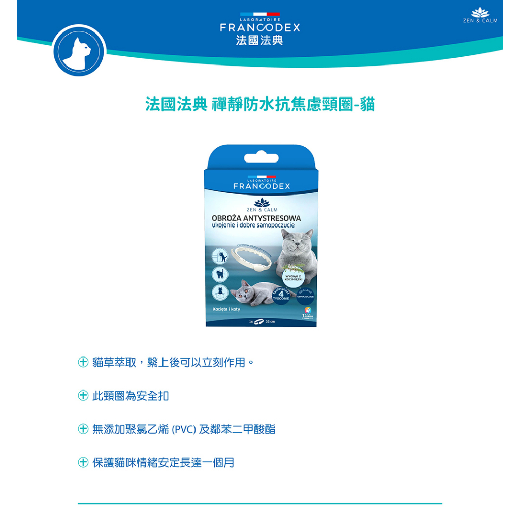 法國法典 禪靜防水抗焦慮頸圈 抗焦慮 防水 貓用 頸圈 方位寵物健康專家 Francodex