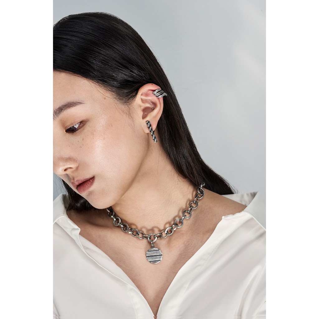 Recovery 海浪麻花一字耳夾 (亮銀)