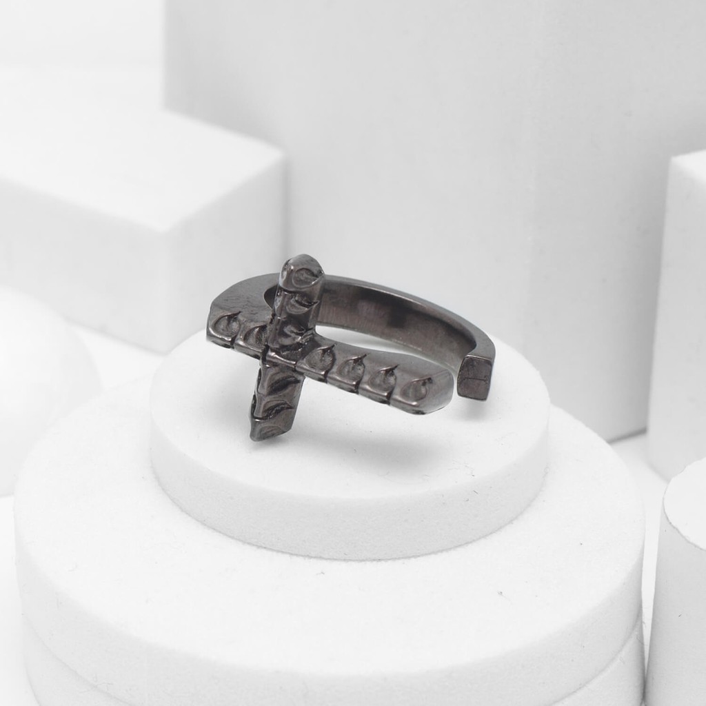 Recovery 蛇骨十字戒指 可調式 電鍍 (黑銀)
