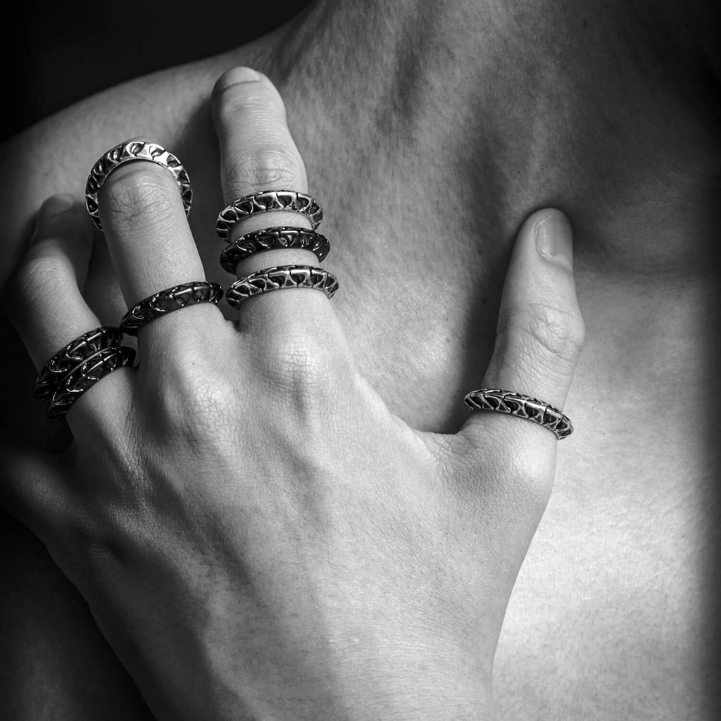 Recovery 蛇骨圈戒指 可調式 電鍍 (古銀)