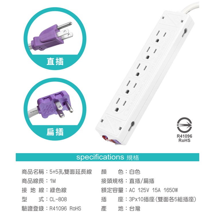 台灣製造 10孔新安規延長線【現貨】台灣安規認證 10孔電腦排插 過載保護 安全插座 延長線
