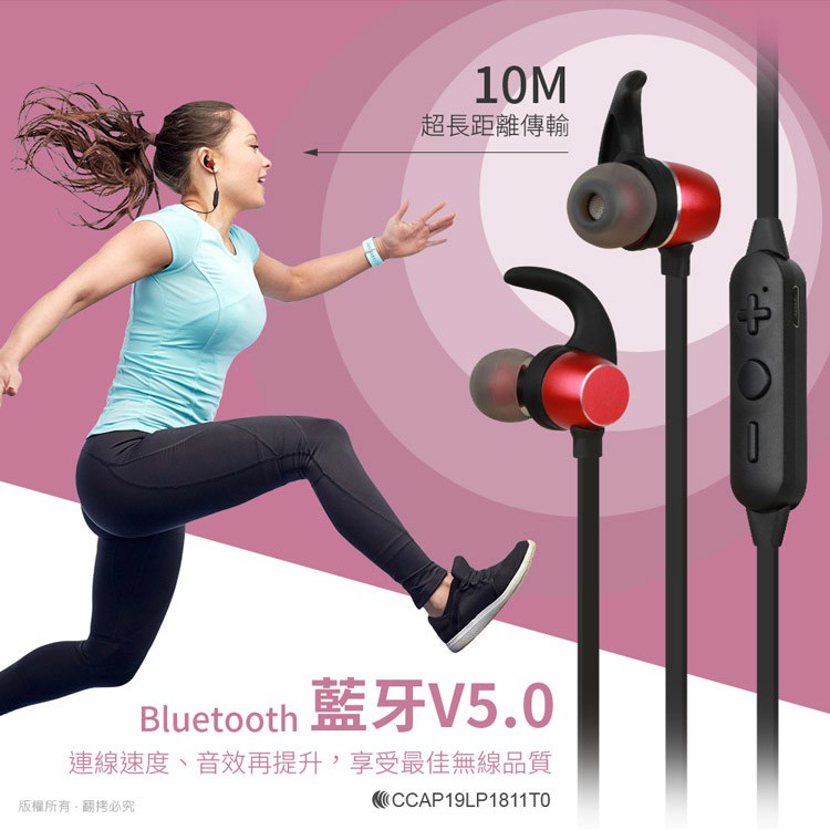 aibo 入耳式磁吸 藍牙5.0耳機麥克風 紅色【現貨】藍芽 耳機 耳麥 藍牙耳機