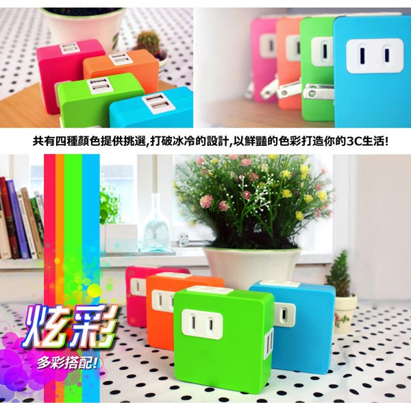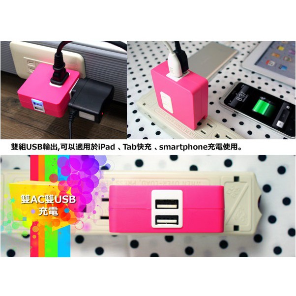 炫彩 2孔插座x2+雙USB埠 分接式插座 粉紅【現貨】插頭 插座 USB 多孔 AC插頭 USB插頭 手機充電