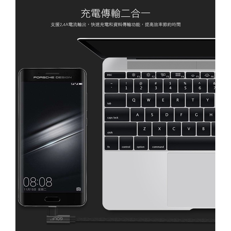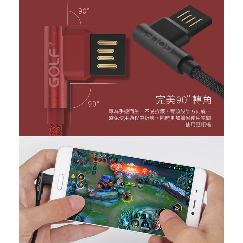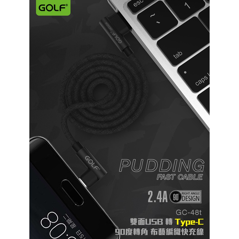 GOLF Type-C 90度轉角 手遊快充線【現貨】1M Type-C 快充線 手遊線 Type-C線 編織充電線