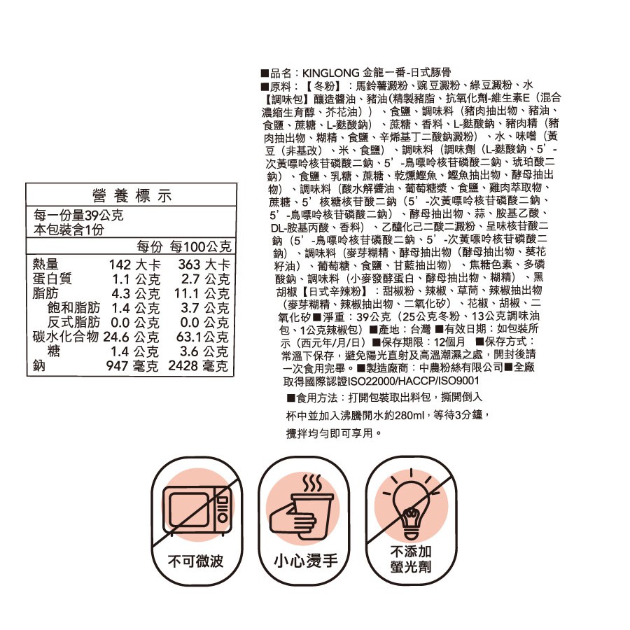 【中農粉絲】金龍一番杯裝即食冬粉 日式豚骨
