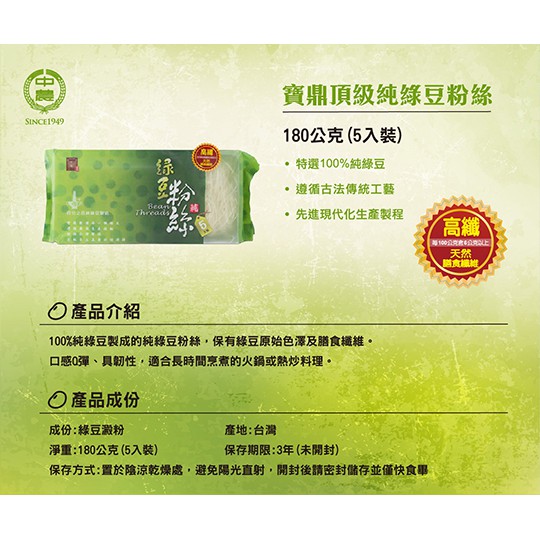 【中農粉絲】中農寶鼎頂級純綠豆粉絲精緻包