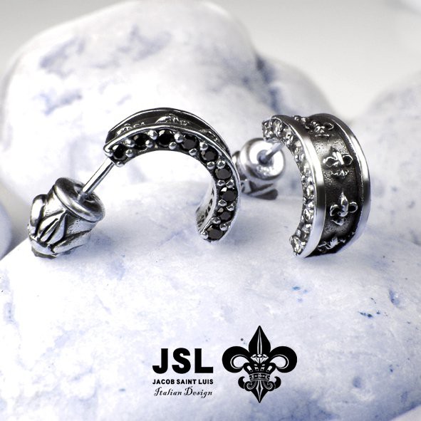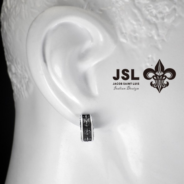 JSL 經典Logo半圈式 鋯石耳環 珠寶鑲 環狀耳環 圈式耳環 純銀耳環(單支)流行 潮牌 個性 飾品 Silver