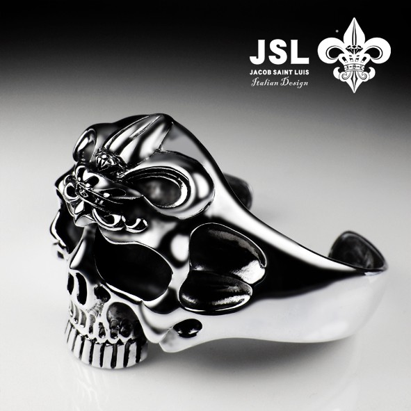 JSL 赫淮斯托斯 經典Logo骷髏純銀手鐲 美式哈雷 Silver J2-11-31