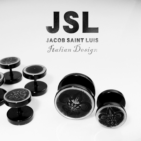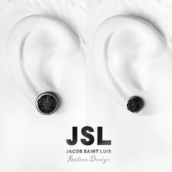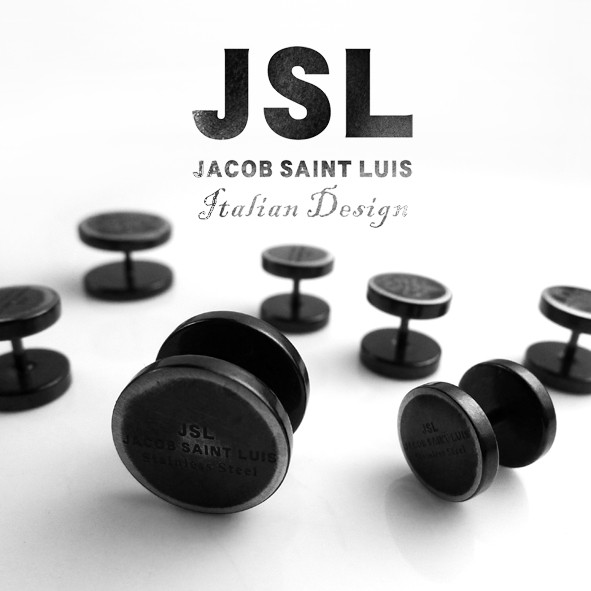 JSL 經典白鋼鍍黑鈦Logo耳環 雙面 螺絲 栓式 手工做舊 黑色耳環 珠寶鋼 醫療鋼 抗敏 耳環 J4-12-29