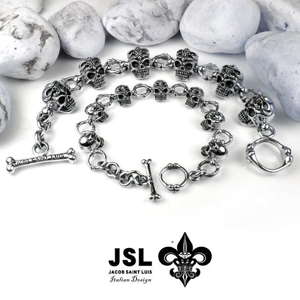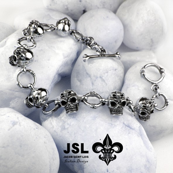 JSL 經典 Logo 骷髏 純銀 手鍊 Silver J2-11-30