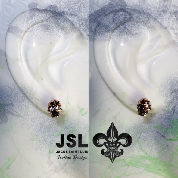 JSL 武爾坎努斯 紅銅 Logo 骷髏耳環(單支)流行 潮牌 個性 飾品 J4-12-09