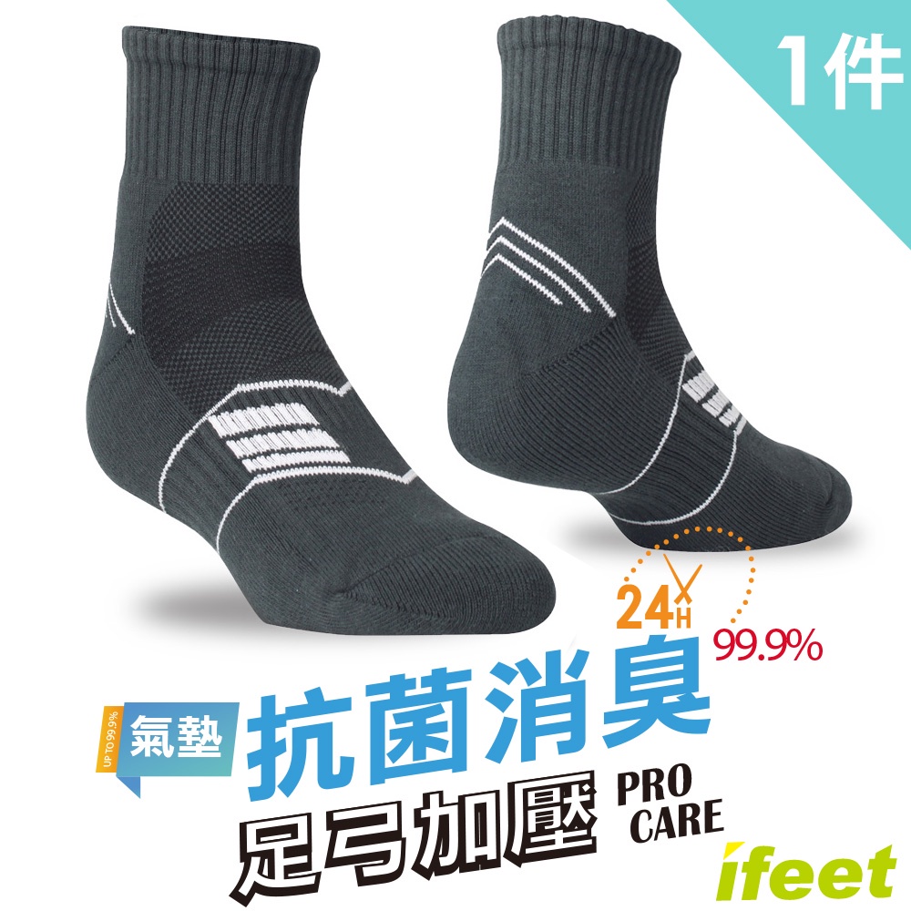 台灣製【ifeet】EOT科技不會臭的運動襪(9813)-1雙入厚底抗菌消臭