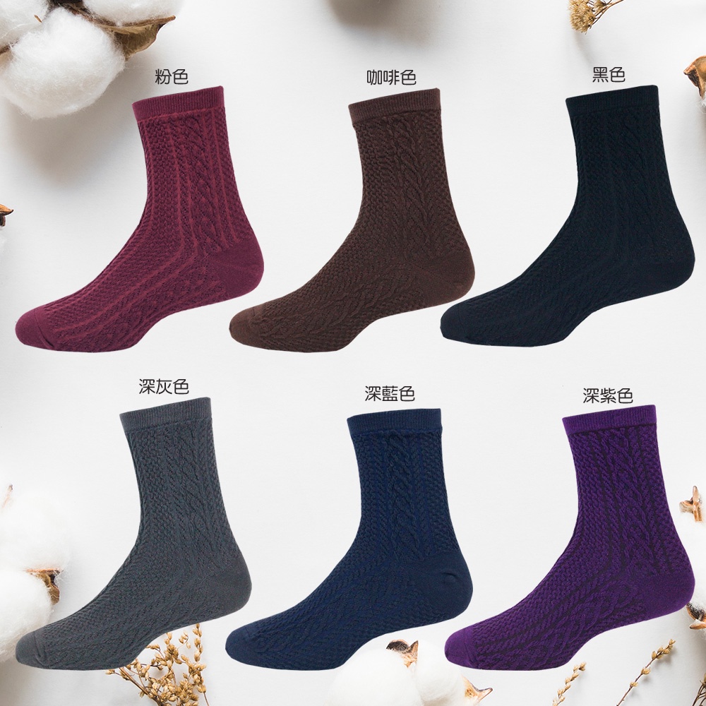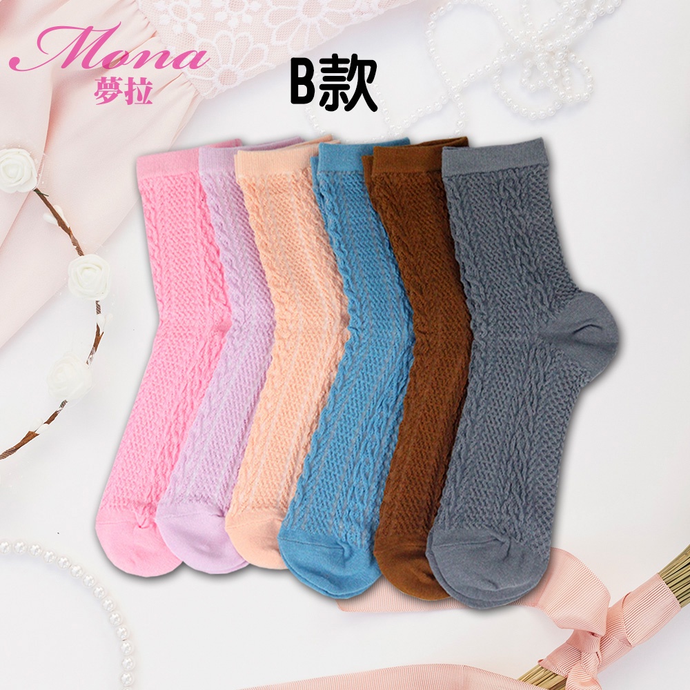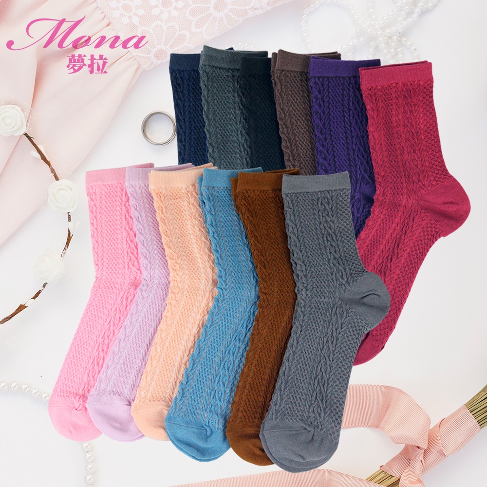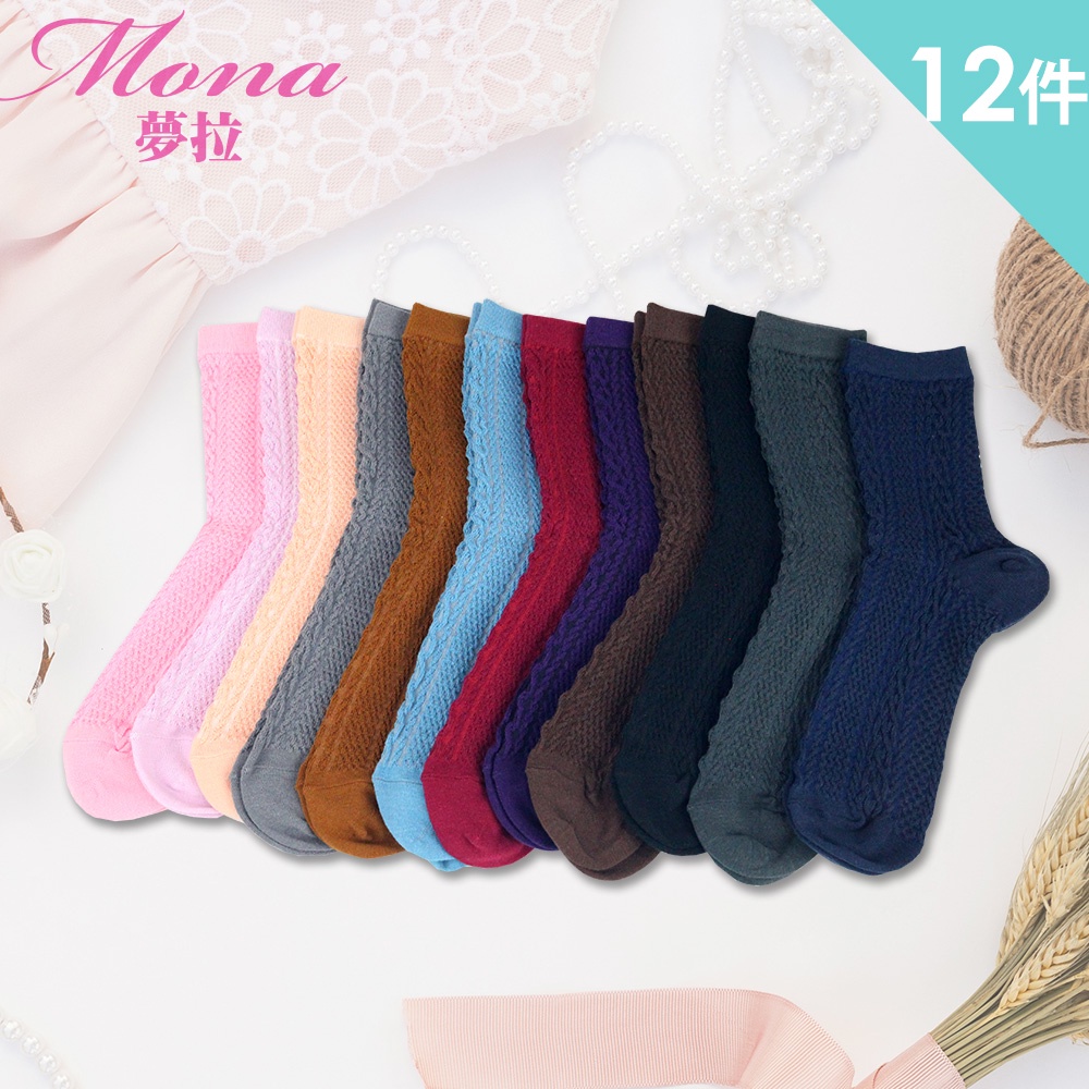 【夢拉】830麻花紋莫蘭迪馬卡龍少女襪-12雙入
