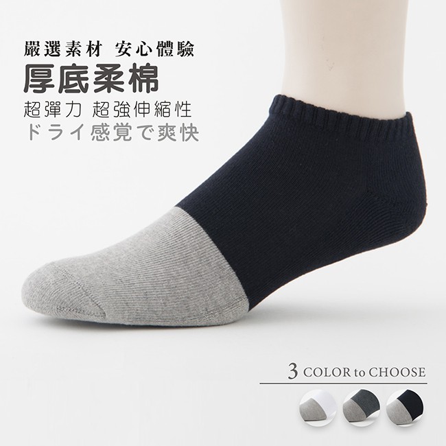 台灣製【ifeet】奈米竹炭毛巾氣墊厚底船型襪(1103)-1雙入-灰色