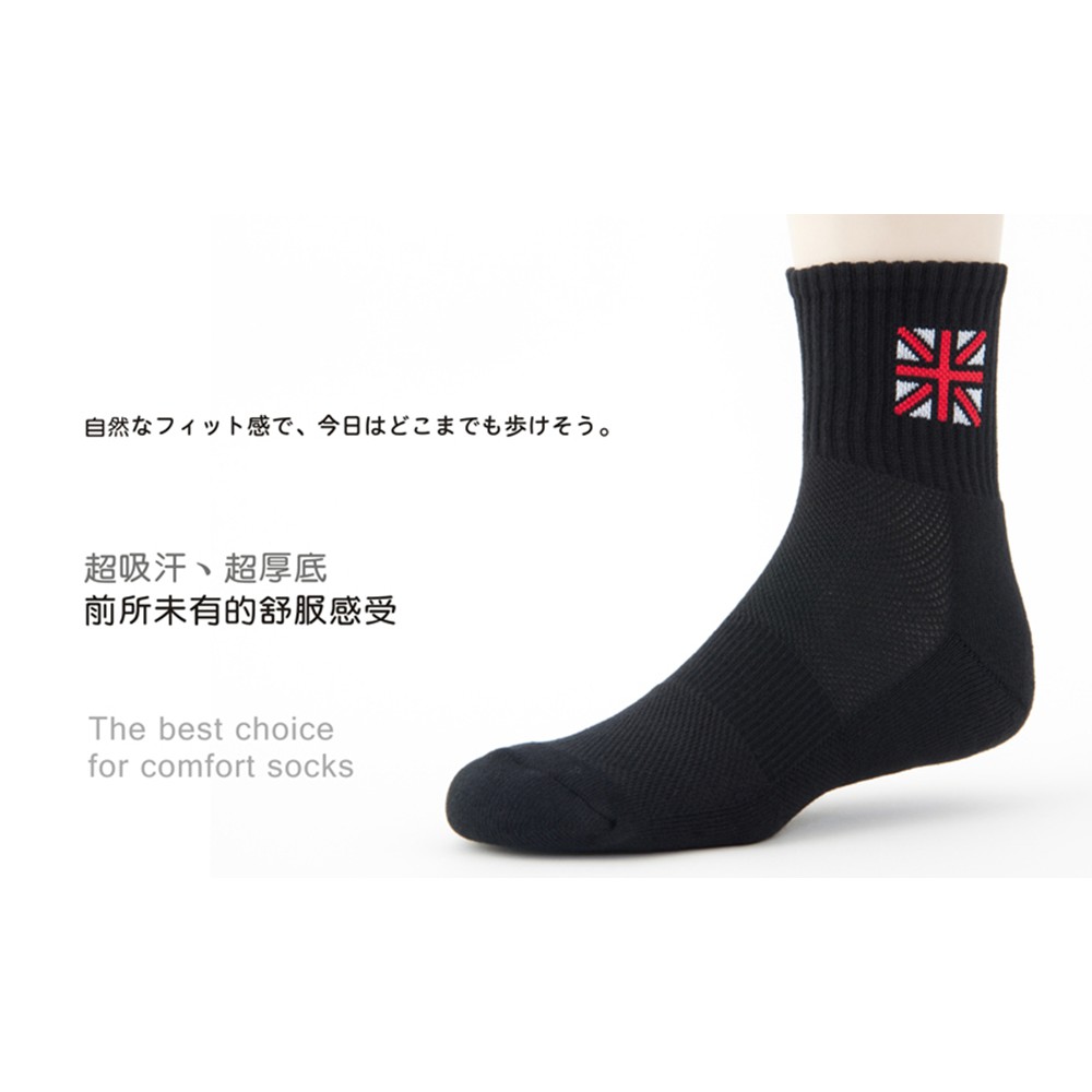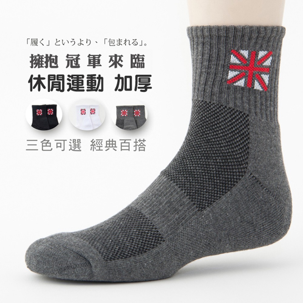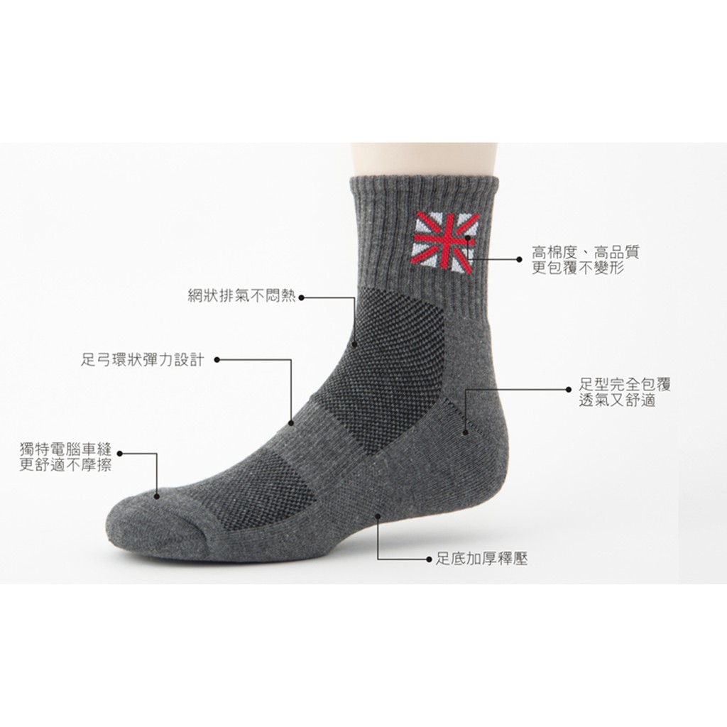 【ifeet】英國國旗毛巾氣墊運動中統襪(6021)-1雙入-灰色(老船長sinacova)
