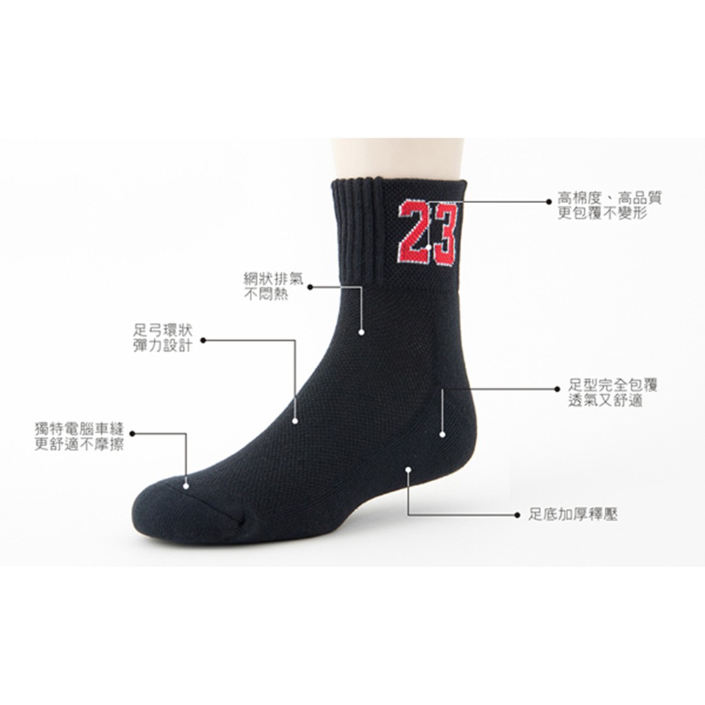 【ifeet】籃球神奇23號毛巾氣墊運動中統襪(6012)-1雙入-黑色(老船長sinacova)