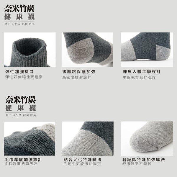 【ifeet】台灣製6雙入奈米竹炭毛巾氣墊厚底中筒襪(6001)老船長