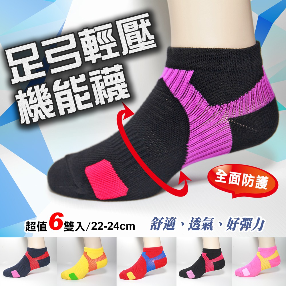 【ifeet】足弓輕壓機能運動襪(K144-4M)-6雙入(女款)(老船長sinacova)