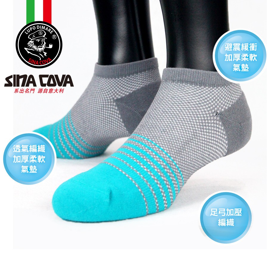 【老船長】活動價EOT科技不會臭的萊卡抗菌足弓氣墊船型襪(8462)-1雙入-水藍色25-27CM