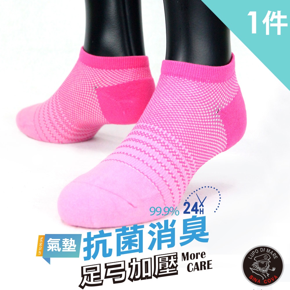 台灣製【老船長】EOT科技不會臭的萊卡抗菌足弓氣墊船型襪(8462)-1雙入-粉色22-24CM