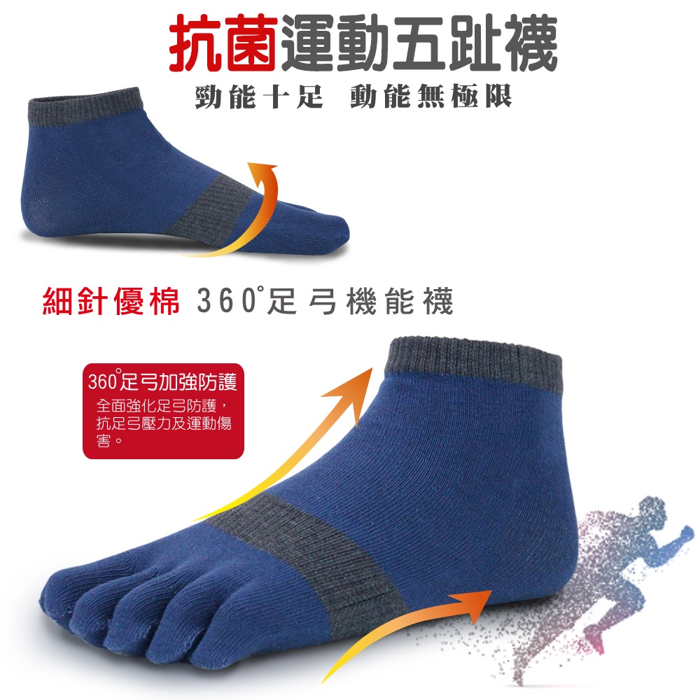 台灣製【ifeet】(8472)抗菌科技足弓運動五趾襪-1雙入灰色