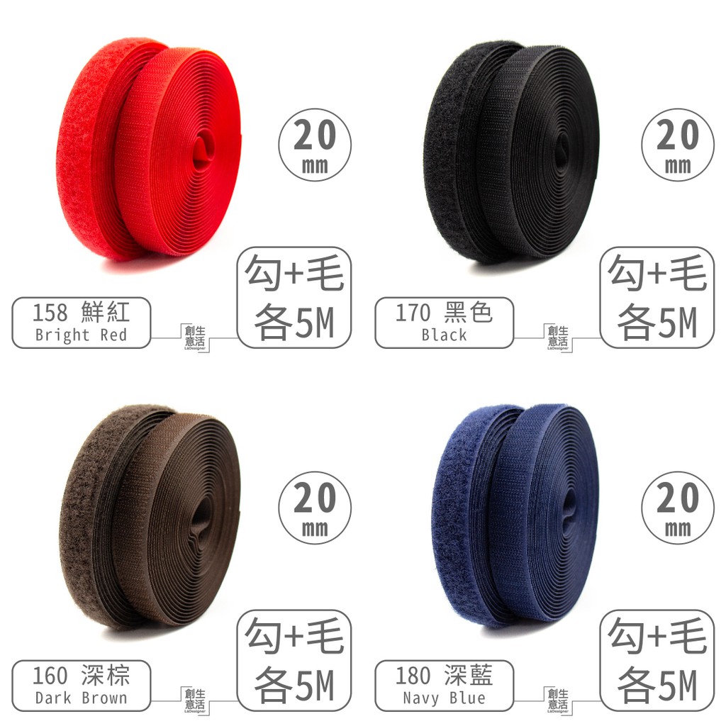 【創意生活魔鬼氈】黏扣帶/車縫專用帶2公分寬 勾毛各5公尺 共12色
