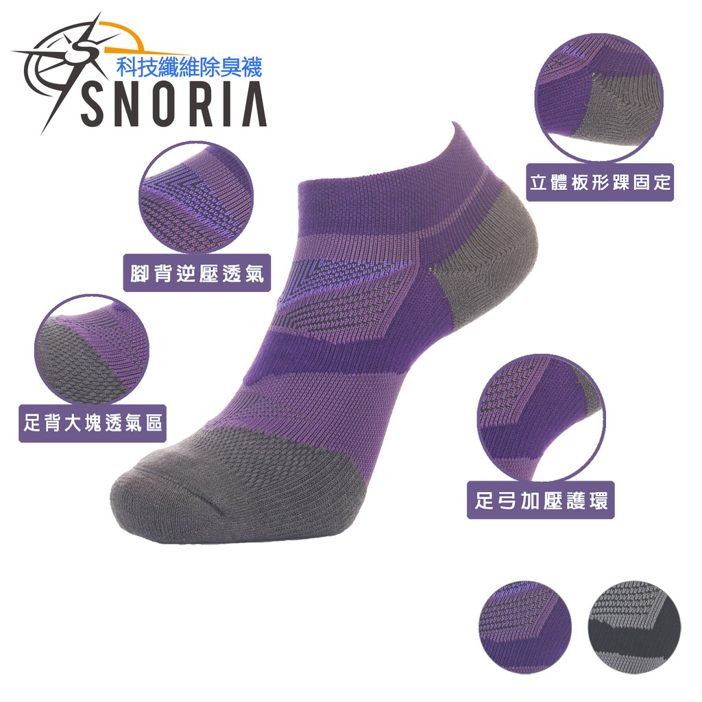 【SNORIA機能除臭襪】輕壓透氣運動襪S號 / MIT台灣製 跑步襪 運動襪 船型襪 氣墊襪