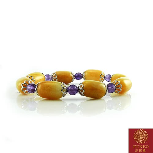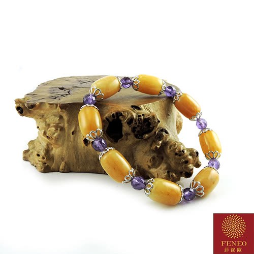 【菲鈮歐】開運老黃玉紫水晶手珠(隨機出貨 1543)