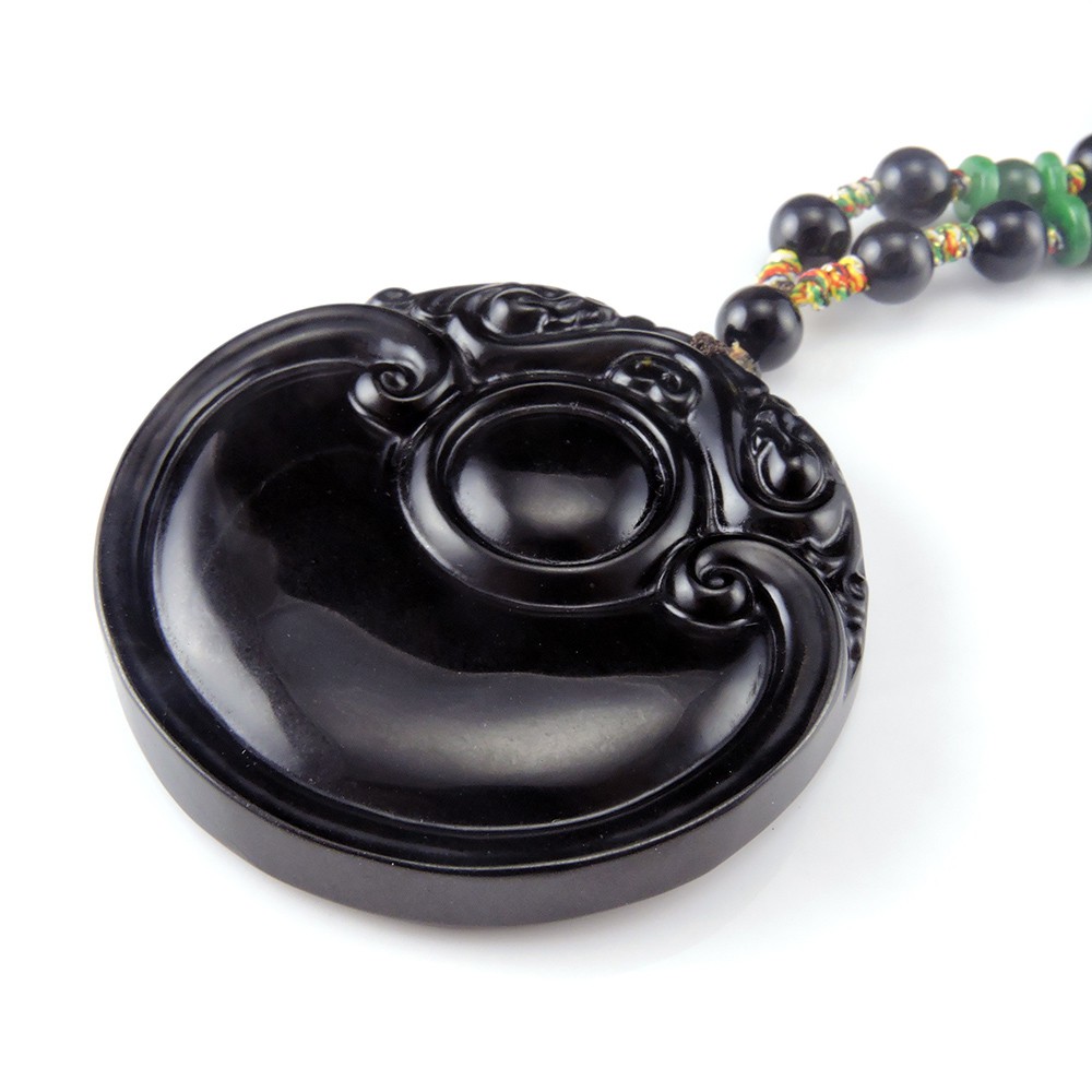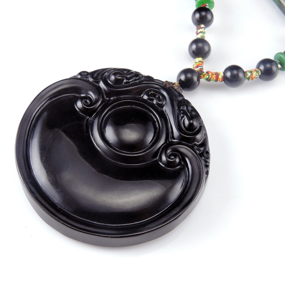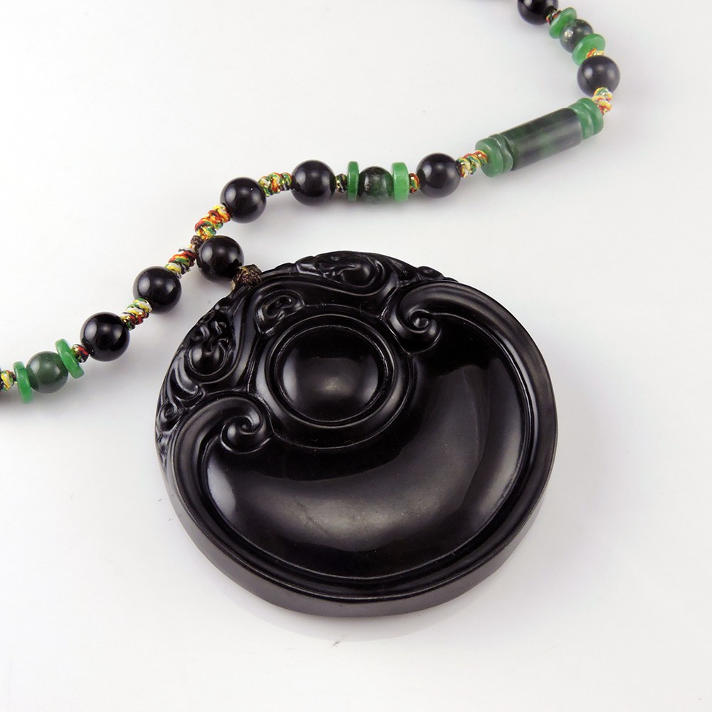 招財雙貔貅如意天然和闐墨玉項鍊(1090)