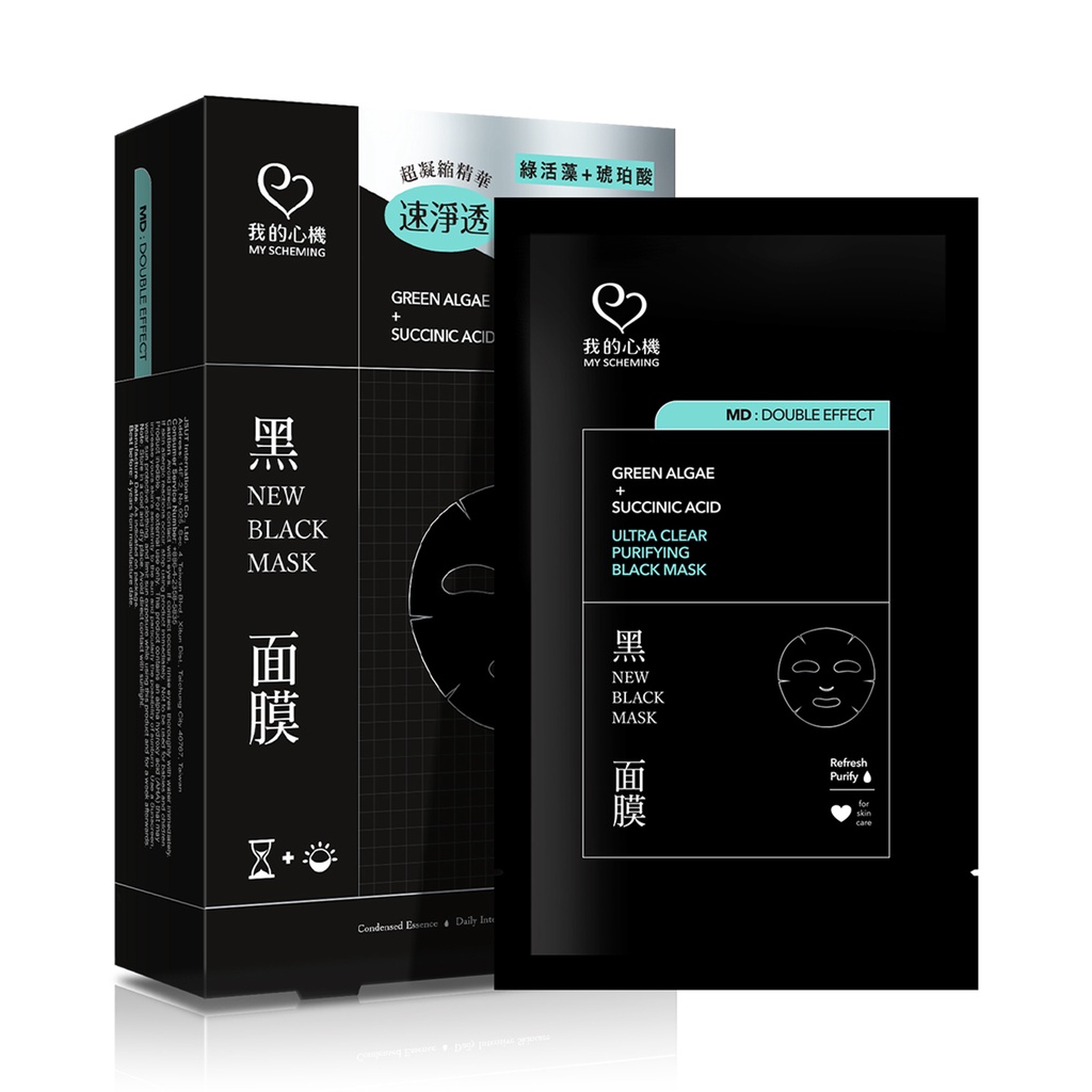 我的心機 科研雙效黑面膜系列 6入/盒 (穀胱甘肽/積雪草分子酊/綠活藻琥珀酸淨化/維生素C熊果素)買一送一