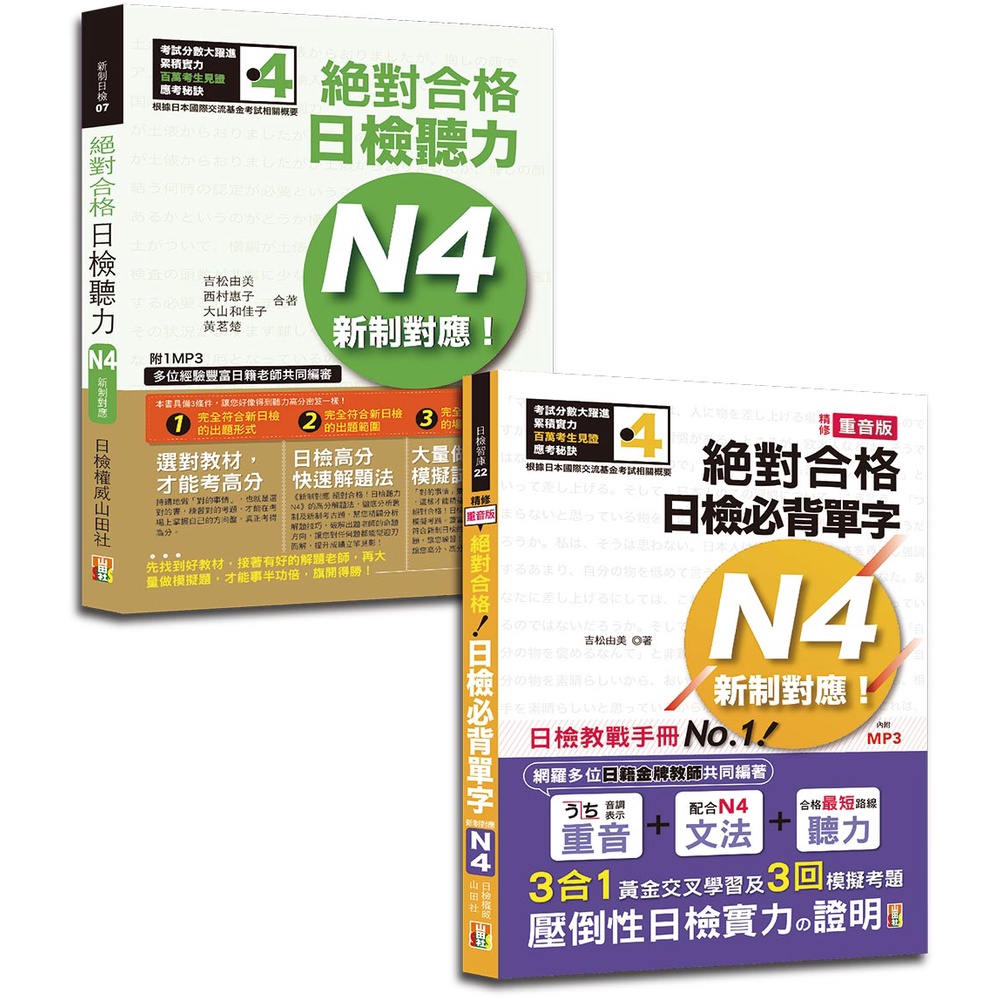 (山田)單字及聽力高分合格暢銷套書:精修重音版 新制對應絕對合格!日檢必背單字N4+新制對應!絕對合格日檢聽力N4-閱己