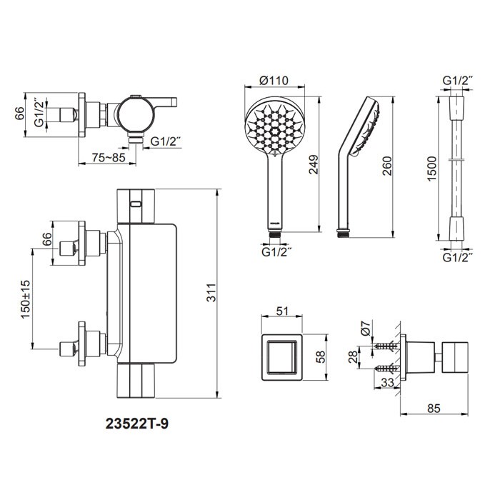 KOHLER Parallel 恆溫沐浴龍頭(法蘭金) K-23522T-9-AF