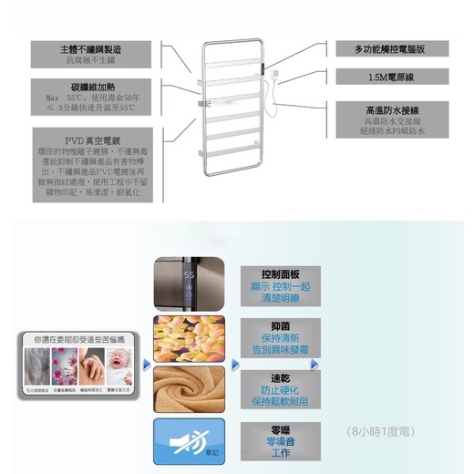 CBK電熱毛巾架(不鏽鋼拉絲/110V) CBK-2023ST