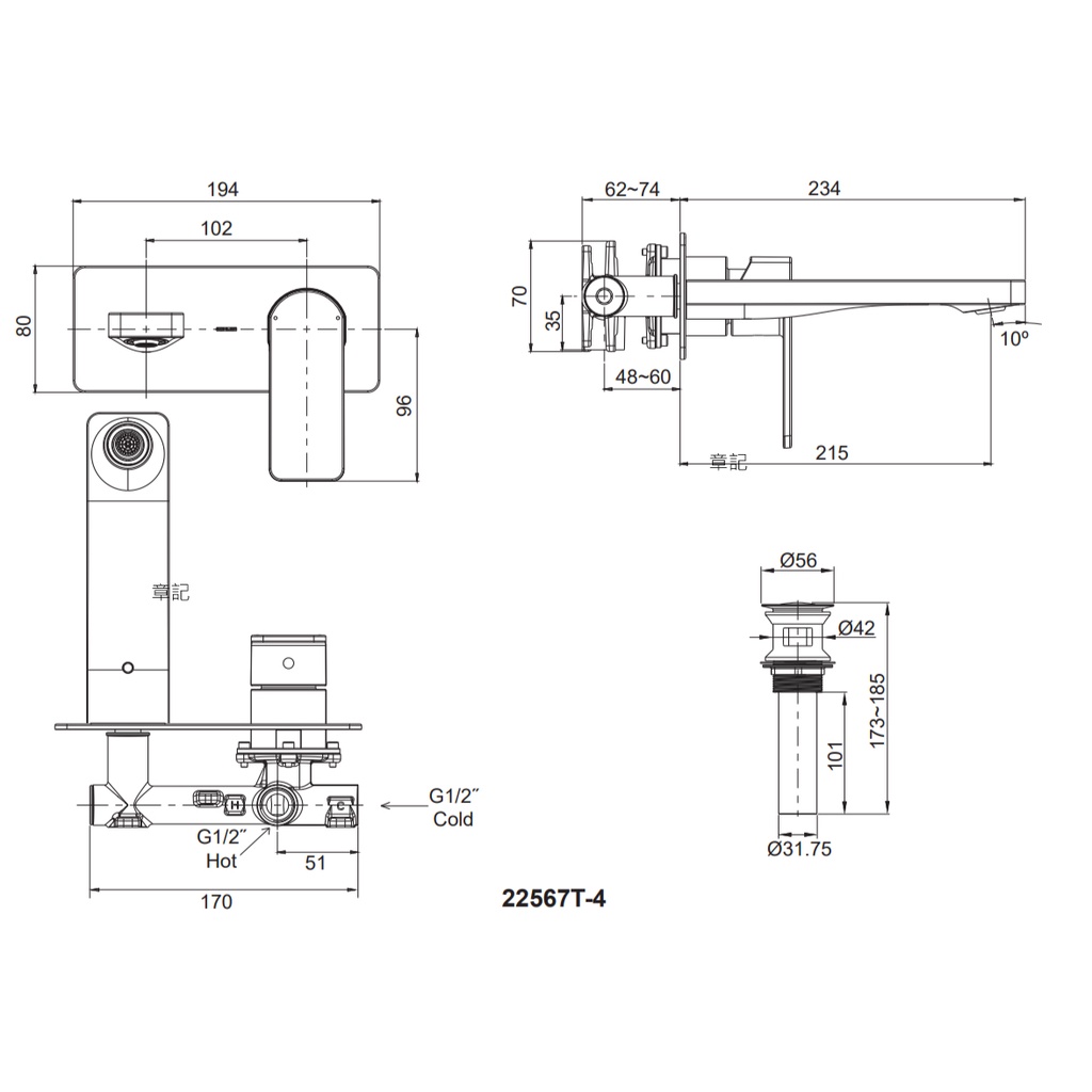KOHLER Parallel 臉盆龍頭(法蘭金 - 長版) K-22567T-B4-AF