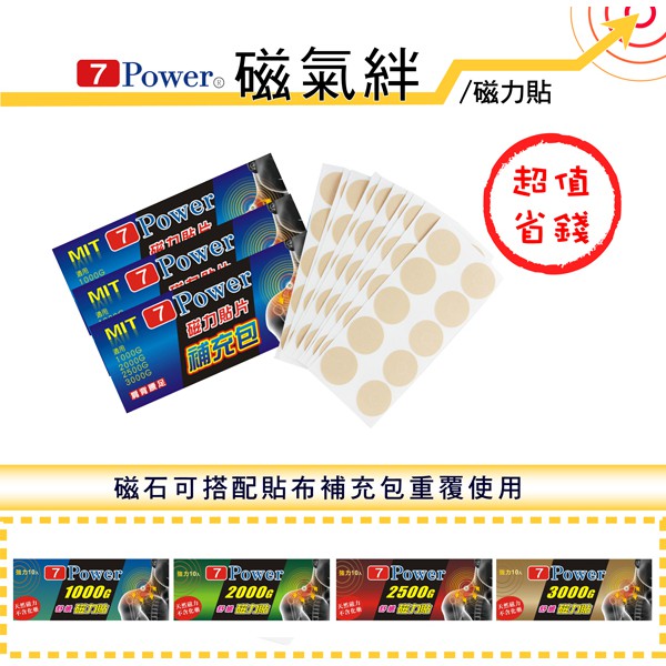 【7Power】MIT舒緩磁力貼1000G+替換貼布超值組 (磁力貼/包/10枚+替換貼布/包/30枚) MIT台灣製造