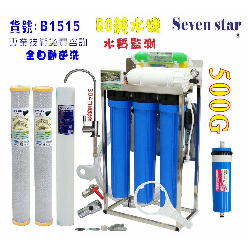 500加直接輸出304腳架20英吋濾心(自動水質偵測)RO純水機 貨號 601515 Seven star淨水網