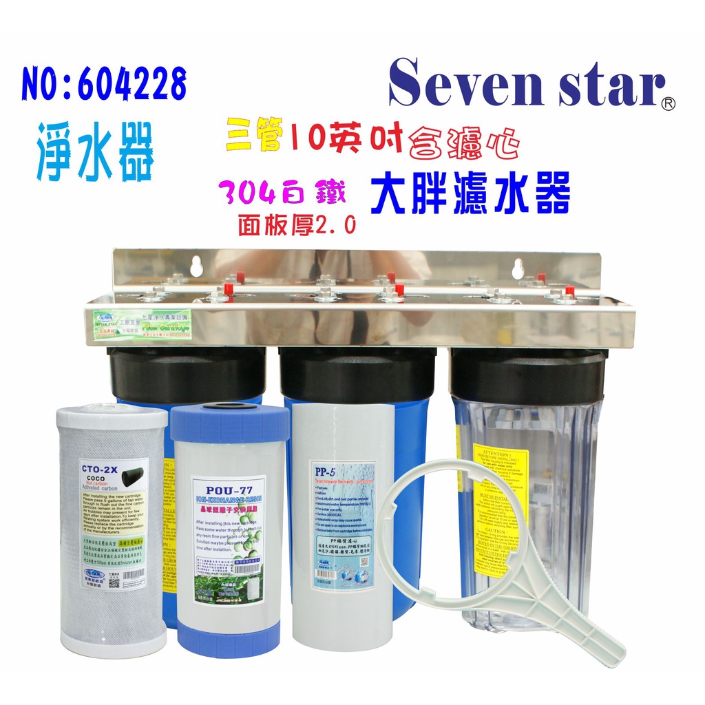 10吋大胖三管透明藍色過濾器 水塔 過濾器 面板304白鐵全戶 貨號 604228 Seven star淨水網