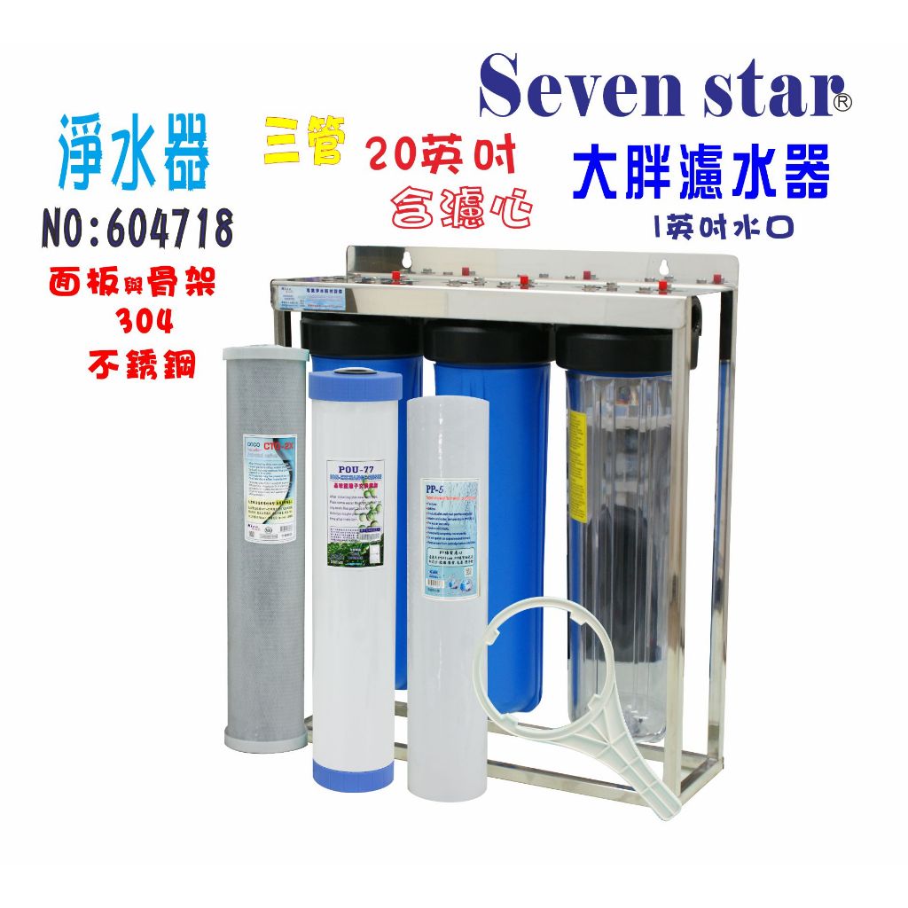 全戶 濾水器 20吋大胖三管304白鐵腳架.淨水器.水塔過濾器 貨號 604718【Seven star淨水網】