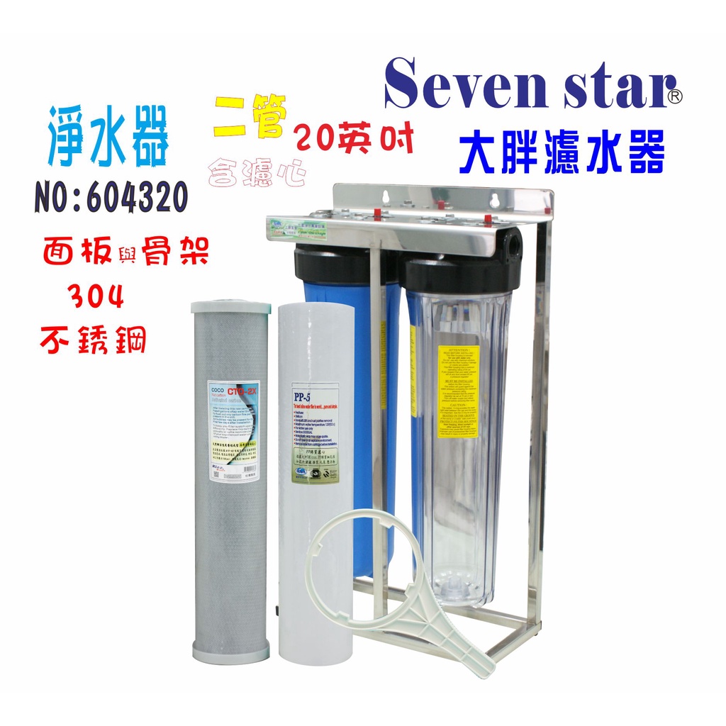 20吋大胖二管透明藍色304白鐵腳架.過濾器.水塔.全戶過濾.貨號 604720 Seven star淨水網
