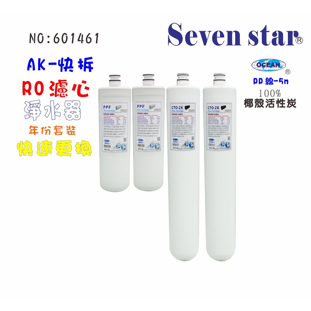 OCEAN卡式椰殼活性炭濾心PP綿質濾心組 貨號 601461 Seven star淨水網