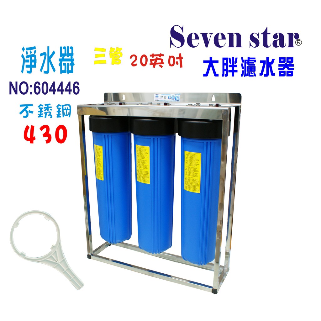 20吋大胖三管白鐵腳架淨水器 水塔過濾器 濾水器水族養殖 有機蔬菜灌溉 貨號:604446【Seven star淨水網】
