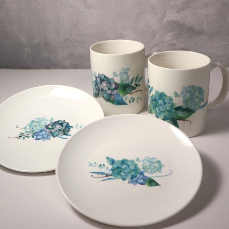 解憂多肉植物杯盤組 聖誕交換禮物 骨瓷 馬克杯 餐盤 點心盤 療癒多肉植物 聖誕禮物